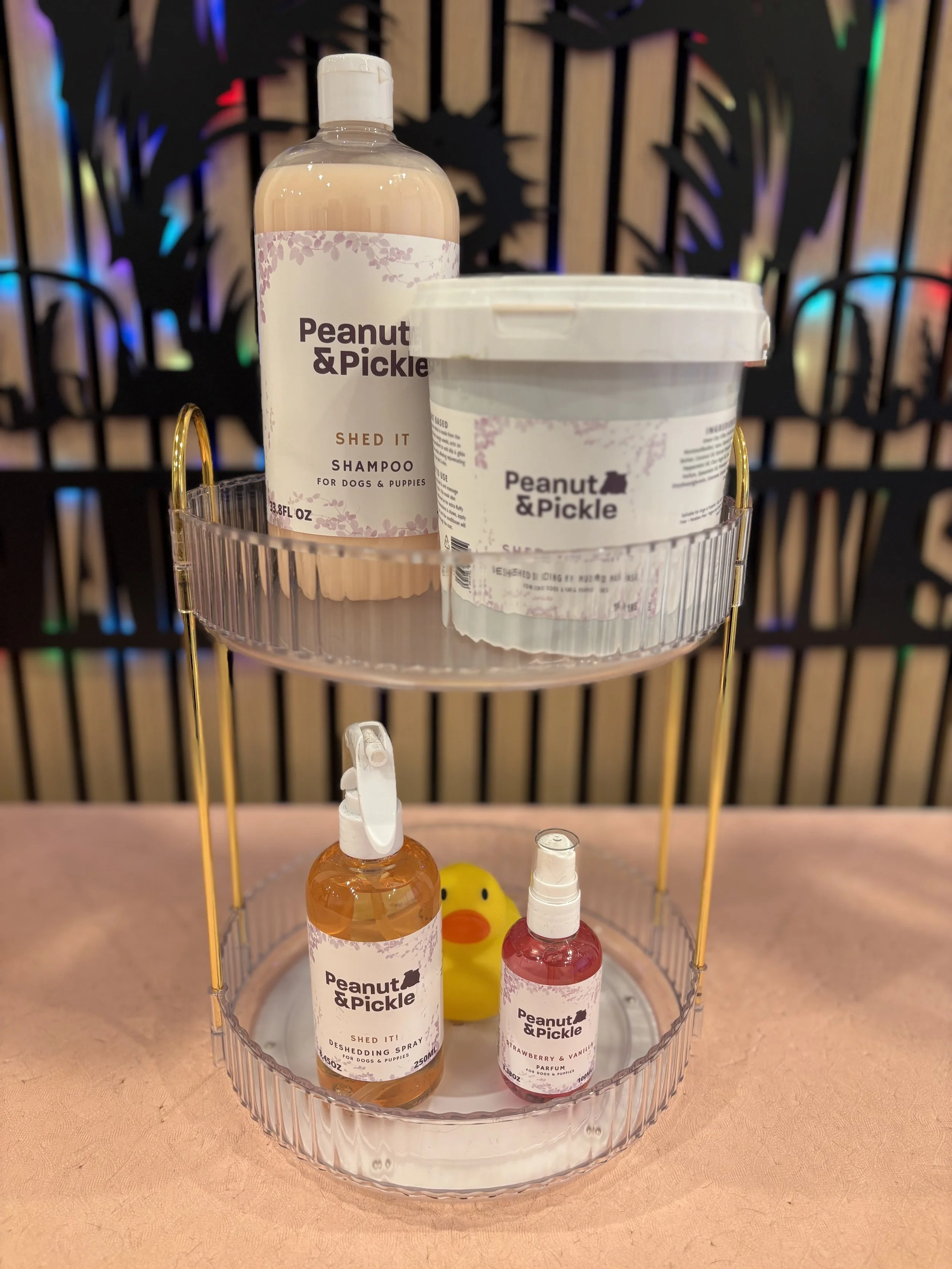 This package includes a Peanut & Pickle Deshed shampoo, Deshedding mud mask and Deshed spray which pairs perfectly in addition to the Deshed Groom.